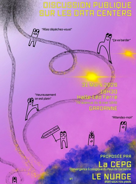 Le collectif Le Nuage était sous nos pieds et la CEPG (Convergence Écologique du Pays de Gardanne) organisent une discussion publique autour de l’implantation de data centers dans la région marseillaise et ses conséquences nocives pour les humains et l’écologie.