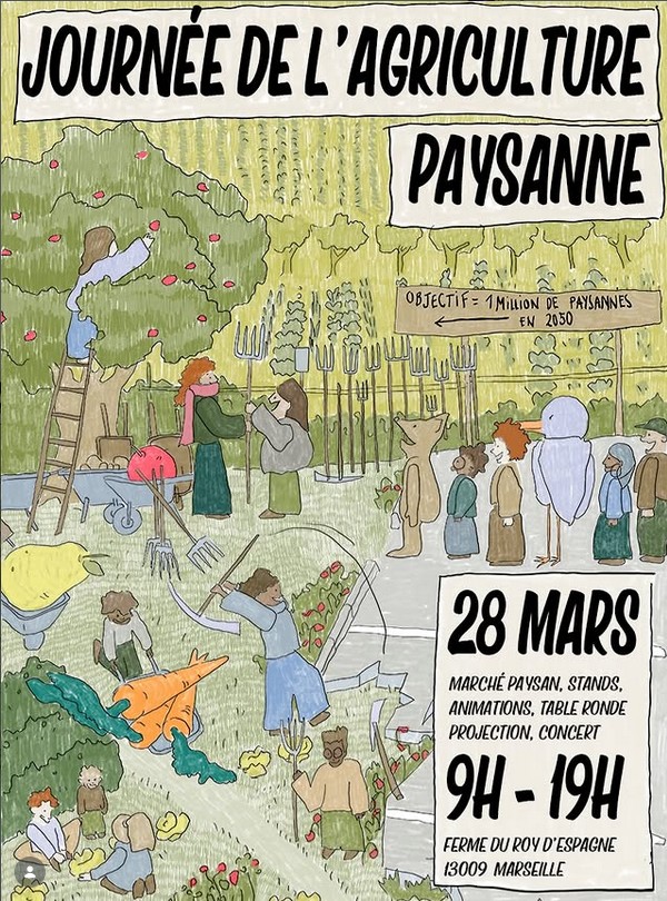 La Journée de l’agriculture paysanne revient à Marseille, le samedi 28 mars à la ferme urbaine du Roy d’Espagne (13009). De 9h à 19h, marché paysan, stands, animations, table ronde, projection, concert… sont au programme.
