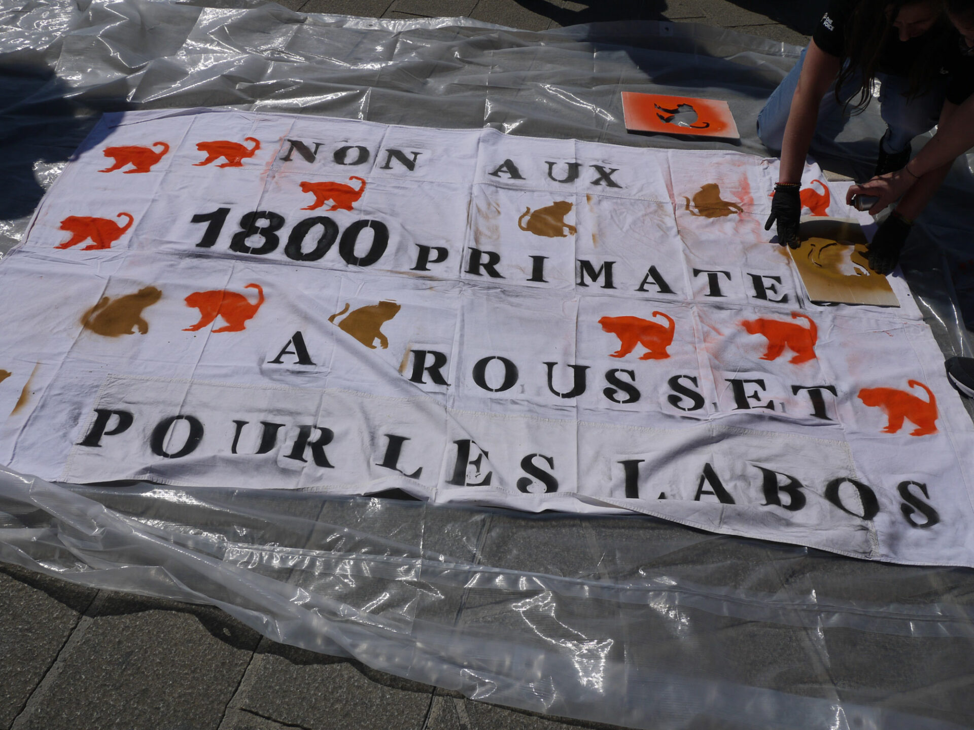 Il faut savoir qu’à côté de Marseille, à Rousset, le CNRS a le projet de tripler son élevage de primates, pour envoyer plus de singes dans les laboratoires français, alors que les directives européennes vont dans le sens contraire. Nous voulons alerter la population car ce sont des êtres hautement cognitifs, sensibles, avec de l’empathie. Nous avons du mal à obtenir des informations sur les souffrances auxquelles ils sont exposés. Contre le CNRS et l’université d’Aix-Marseille, nous nous sommes battus pendant trois ans pour avoir les documents liés aux primates détenus dans les laboratoires. On a eu gain de cause en fin d’année, mais voilà, il a fallu lutter trois ans contre cette opacité, alors que ce sont des documents censés être publics, que n’importe quel citoyen ou citoyenne peut demander.