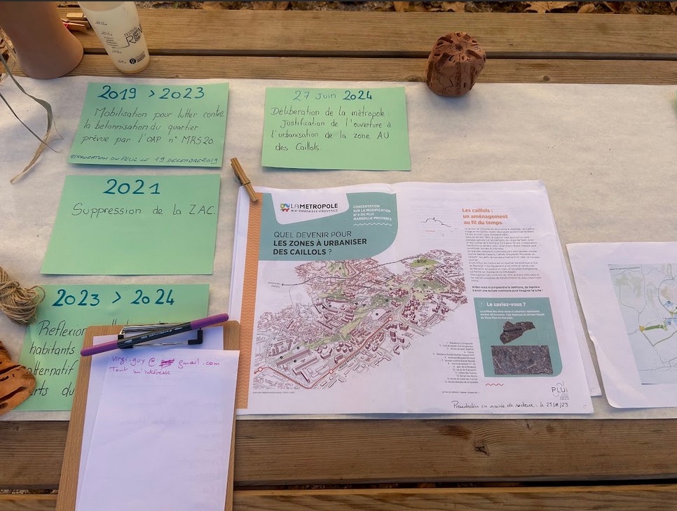 « Dans ces quartiers, les habitants en ont marre des constructions, ils ont envie de faire quelque chose pour préserver ces espaces verts » : Élise Méouchy, coordinatrice de projet au Donut Infolab, a fait ce constat dès son arrivée sur le terrain. La ZAC des Caillols (Zone d’Aménagement Concertée, opérations publiques d’aménagement de l’espace urbain) existe depuis le 21 février 1974 (date de l’arrêté préfectoral). En 2021, la ville de Marseille décide de la supprimer au motif « d’équipements achevés » et « d’objectifs atteints ». Selon la ville, la ZAC a « permis de créer une offre d’habitat diversifiée au sein d’un cadre urbain et paysager, de remodeler et d’implanter un centre urbain comprenant le centre commercial Casino, le centre médical et la Mairie des 11e et 12e arrondissements ». Pour certains habitants, la multiplication des immeubles et du béton empiète sur leur qualité de vie. Pour les associations qui défendent l’environnement, il est temps de laisser la nature tranquille.