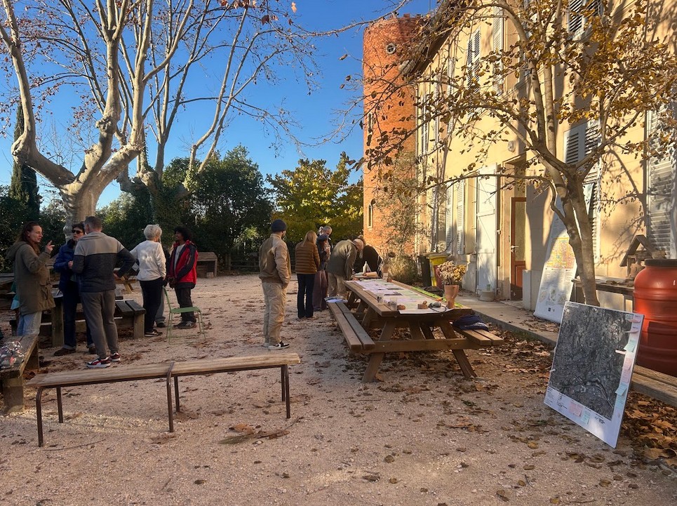 « Et si on proposait des balades le long de la trame verte pour mieux la visualiser ? » « On pourrait aussi faire appel à une artiste du quartier pour nos visuels ? » « La terre d’ici est très argileuse, si on récupérait celle des chantiers voisins, on pourrait réparer des murs et fabriquer des hôtels à insectes avec ! ». Le 13 décembre 2025 à la ferme du Collet des Comptes, chaque personne présente au café participatif organisé par le collectif Trames Vertes a une idée pour nourrir le projet. C’est le quatrième et dernier atelier participatif et de rencontre proposé par le collectif. « Trames Vertes », né en mai 2025 d’un élan citoyen et d’un projet commun à plusieurs associations et CIQ des 11e et 12e arrondissements, se bat pour la préservation de 25 hectares de nature menacés par l’urbanisation. En février 2026, le collectif doit présenter un document détaillé, enrichi de leurs multiples travaux et actions, présentant des arguments concrets contre le projet d’urbanisation de ces 25 hectares. Selon Trames Vertes, cette mobilisation est d’intérêt général : l’artificialisation par l’urbanisation d’une partie des 11e et du 12e arrondissements (de la Grognarde jusqu’à la ferme du Collet des Comptes, en passant par la butte de Butris et la friche du Collet des Comptes) menace des milieux naturels et des sols vivants, des espaces nourriciers, des habitats nécessaires à la préservation de la biodiversité et des lieux de respiration et de mobilités douces pour les habitants.