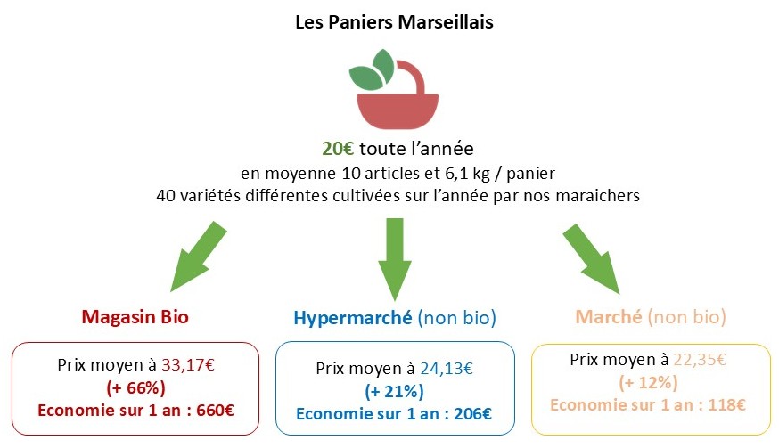 Il s’agissait de comparer les prix des paniers de légumes des producteurs des AMAP de Marseille. Je voudrais bien clarifier que ça n’avait pas pour objectif au départ de montrer à toute force qu’on était moins cher, et donc de mettre la pression sur les producteurs pour qu’ils maintiennent des tarifs plus faibles. Ils calculent leurs prix en fonction de leur exploitation, et il s’avère que ça reste moins cher qu’en supermarché. Donc l’objectif était de montrer cette différence-là, surtout pour contredire ce qu’on entend tout le temps dans les médias, que la bio est trop chère. Oui, la bio est chère quand on la prend au supermarché ou dans les enseignes spécialisées, mais quand on choisit bien son mode d’approvisionnement avec les producteurs sans intermédiaire, cela permet de faire un prix de revient plus bas. Notamment grâce à un certain nombre de bénévoles qui travaillent pour que le paysan puisse venir distribuer ses produits.
